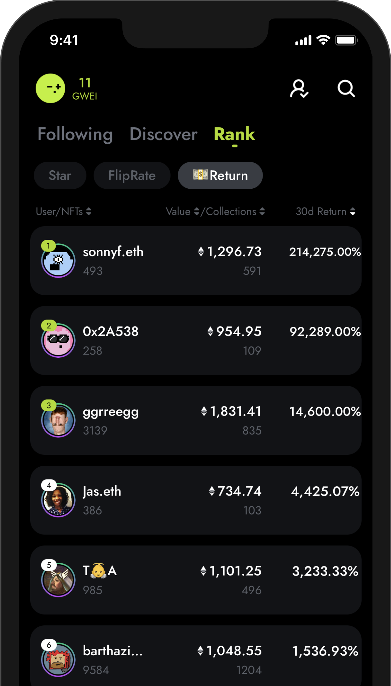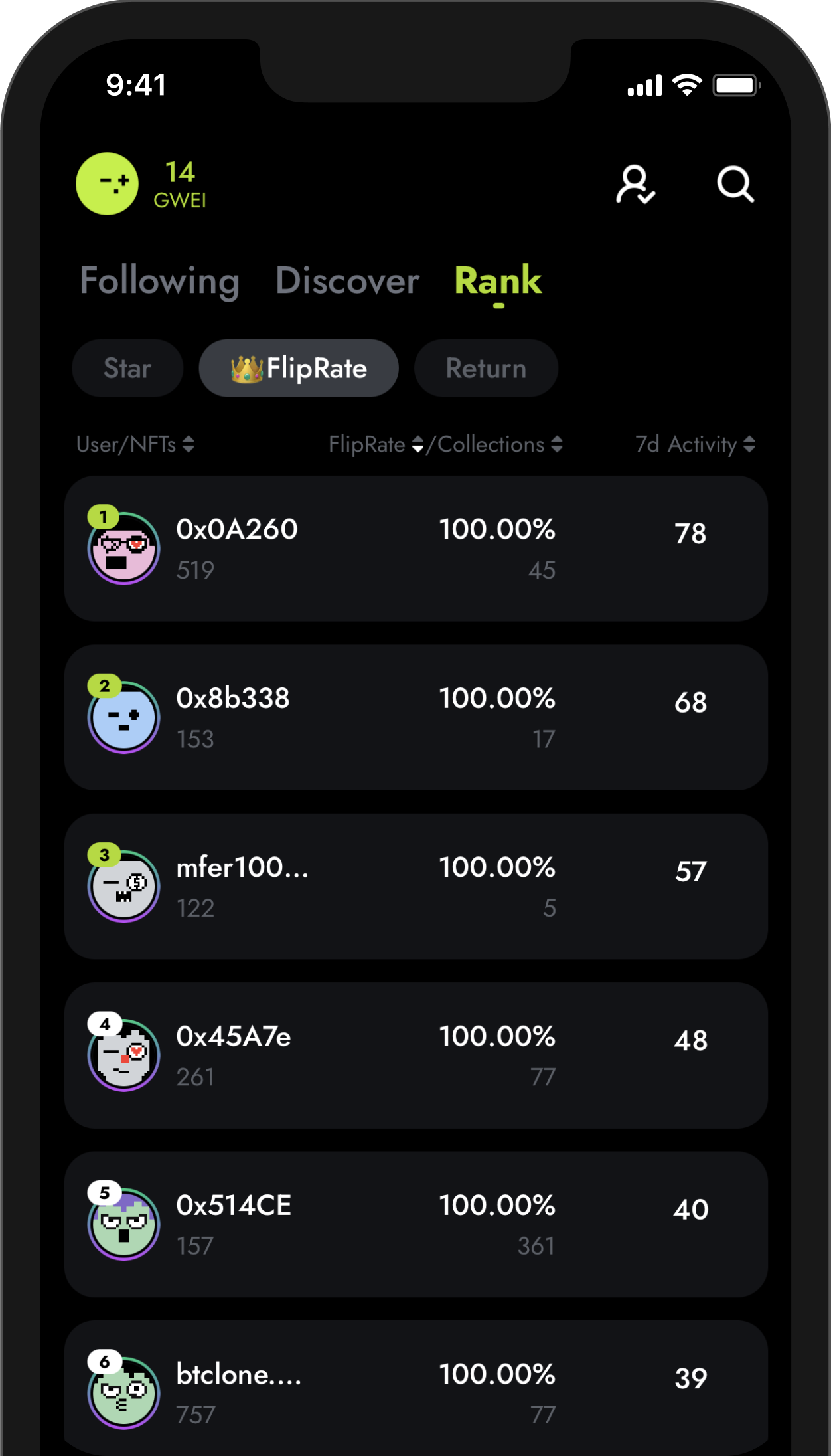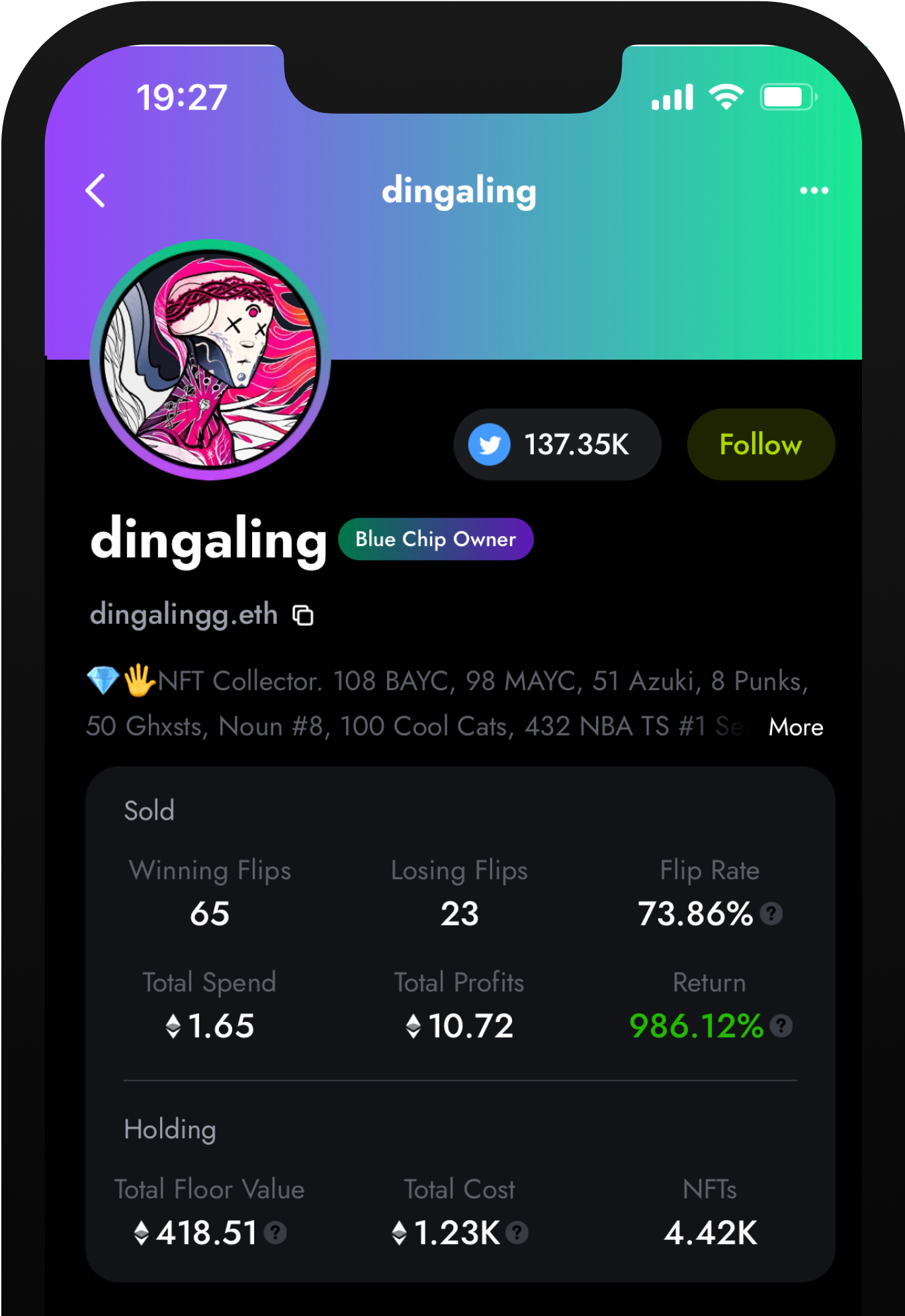Discover NFT KOLs, Diamond hands who usually invested in new potential projects.